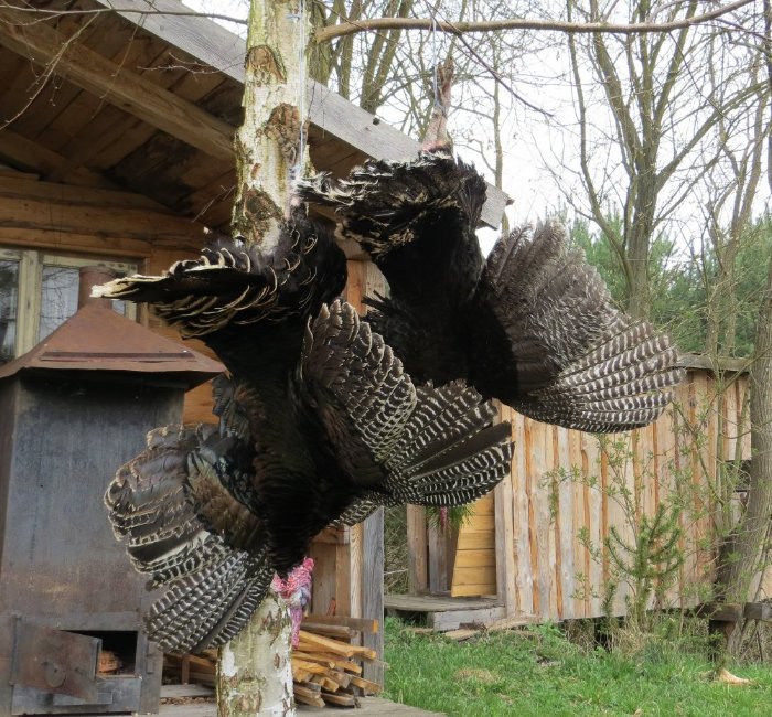 Einige Gebiete in Ost Tschechien haben noch eine freilebende Wildtruthahnpopulation, die Haehne werden in der Balz von 15 Maerz bis 15 April gejagd.